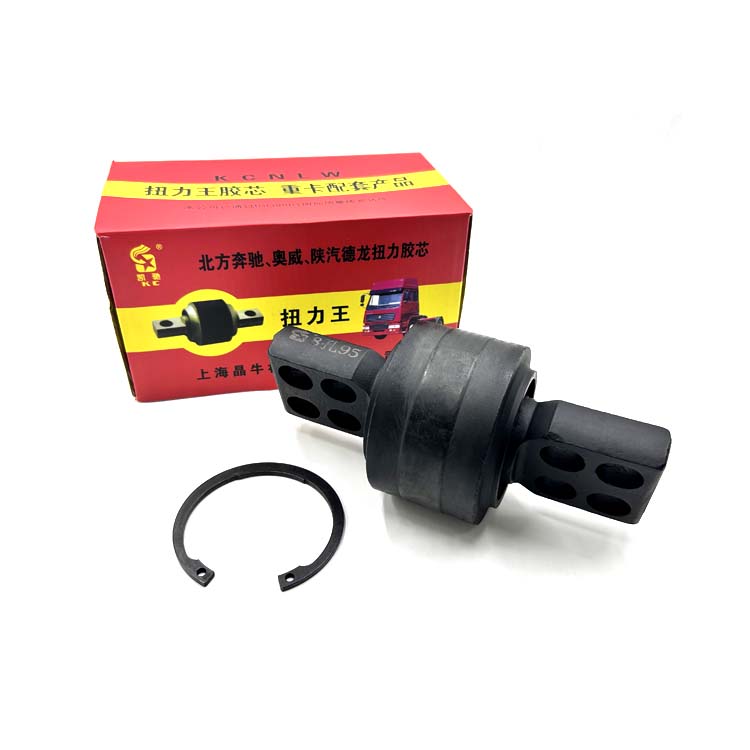Bague de tige de couple pour HOWO SITRAK C7H (joint en caoutchouc) : Le nom anglais Torque rod bush agit sur les deux extrémités de la tige de torsion du pont de châssis de SINOTRUK. Il joue le rôle d’amortisseur et de tampon et est utilisé pour le guidage et la transmission de force. Il est soumis à d’importantes forces de poussée-traction et de torsion. , Le noyau en caoutchouc Torque est une pièce d'usure. Le noyau en caoutchouc Torque est principalement constitué de broches à billes métalliques et de vulcanisation du caoutchouc. Lors du montage, le noyau en caoutchouc est forcé dans le boîtier de la tige de poussée.